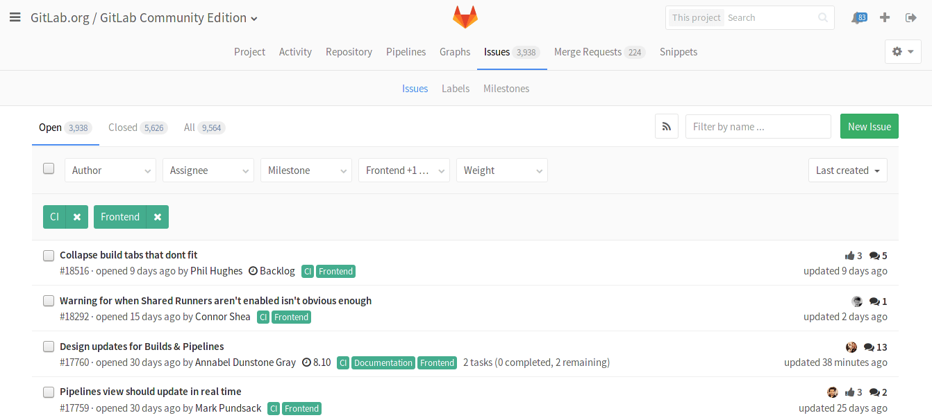 Use labels to filter issues